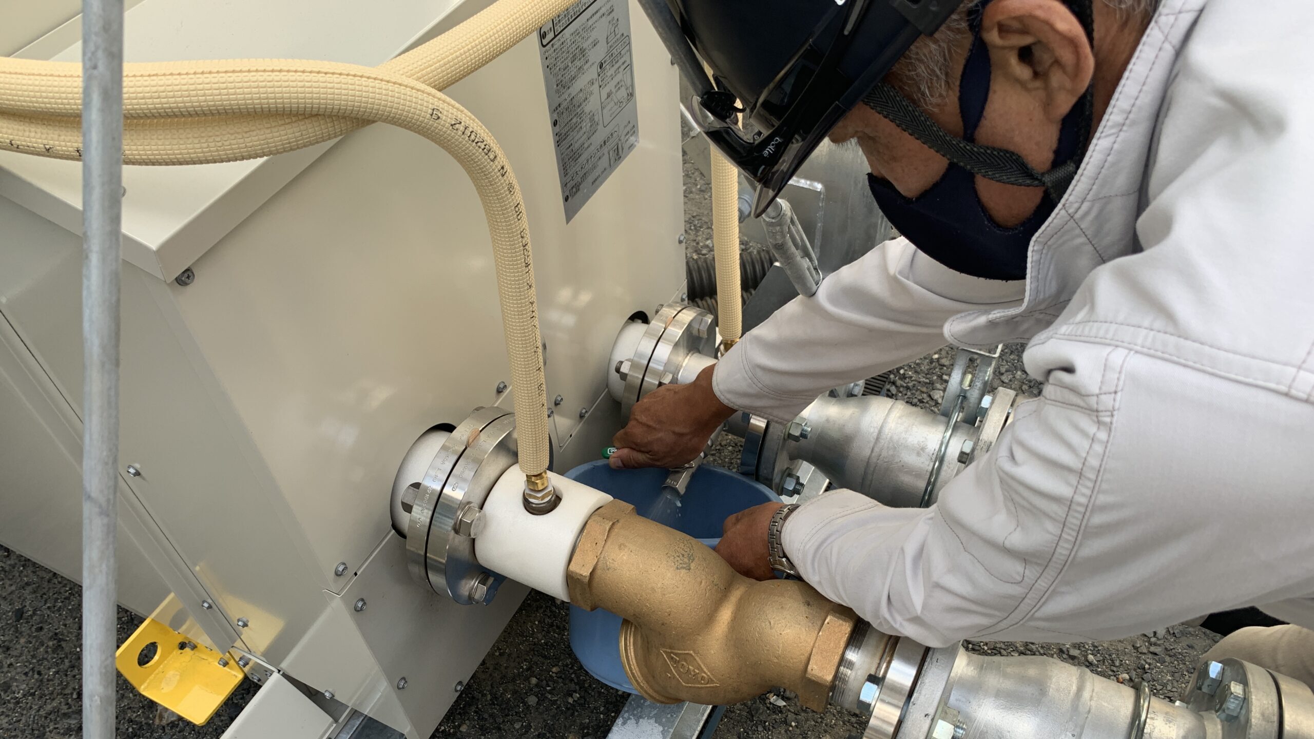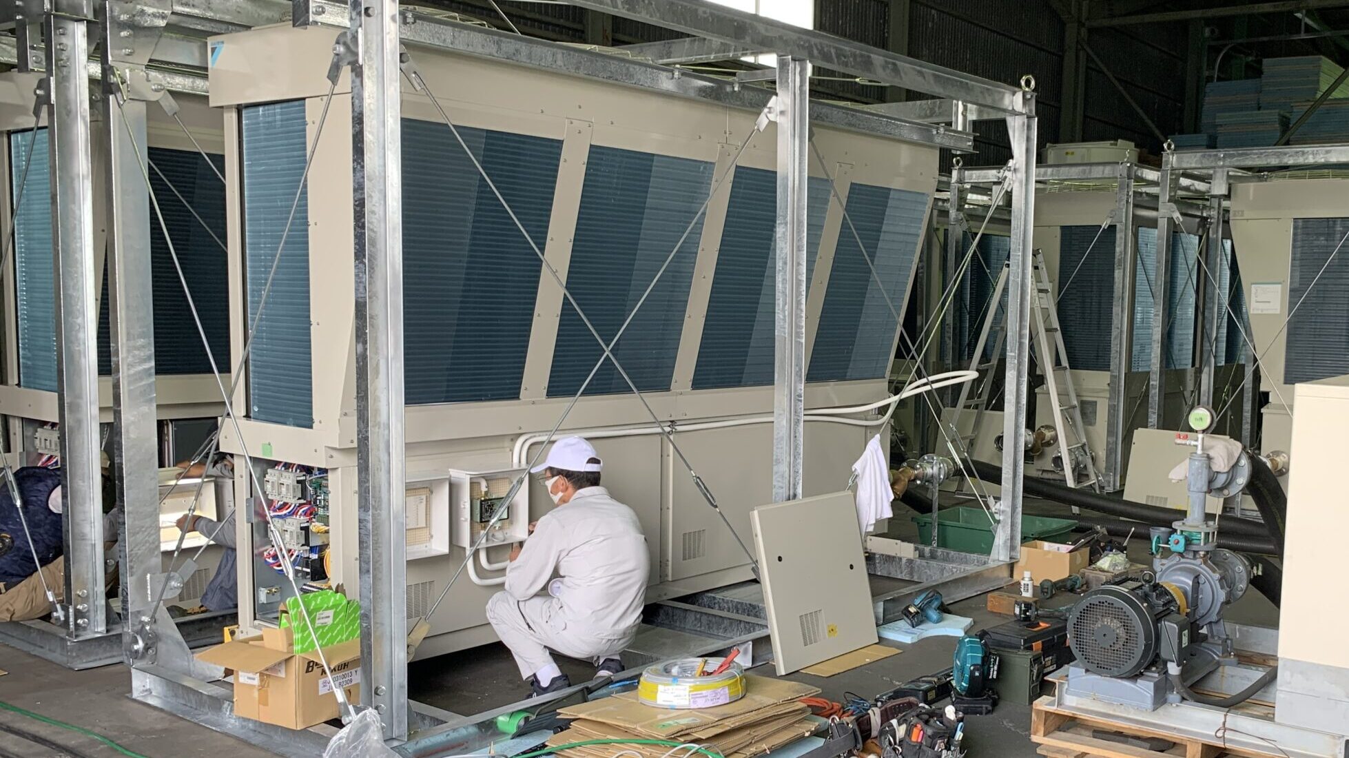 - 大型エアハンドリングユニットとレンタルチラーを組み合わせることで大空間の冷房設備として活用できます。